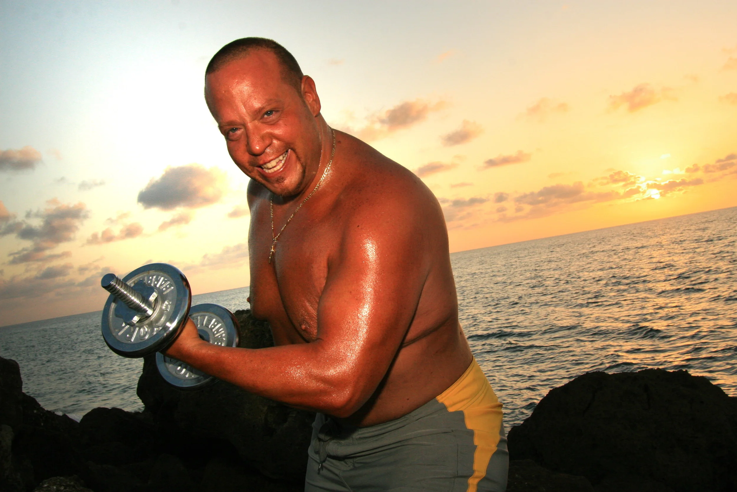 John defendis blew my mind with his traditional metal plates routines. John’s gym Coops Health and Fitness Center is all about passion and taking it to the next level with Ultrafit. When I went to South Carolina to train with John my regime consisted of three super sets made up of anywhere from 10 to 20 repetitions per set. I continued this work out 4 days a week. Day one: chest and shoulders. Say two: back. Day three: arms and Day four: butt and hamstrings.